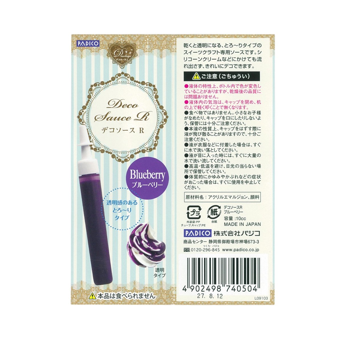Faux coulis pour décorer des petits desserts. Il durcit à l'air libre. Très rèaliste. Nettoyez l'embout après chaque utilistaion et refermez-le bien.